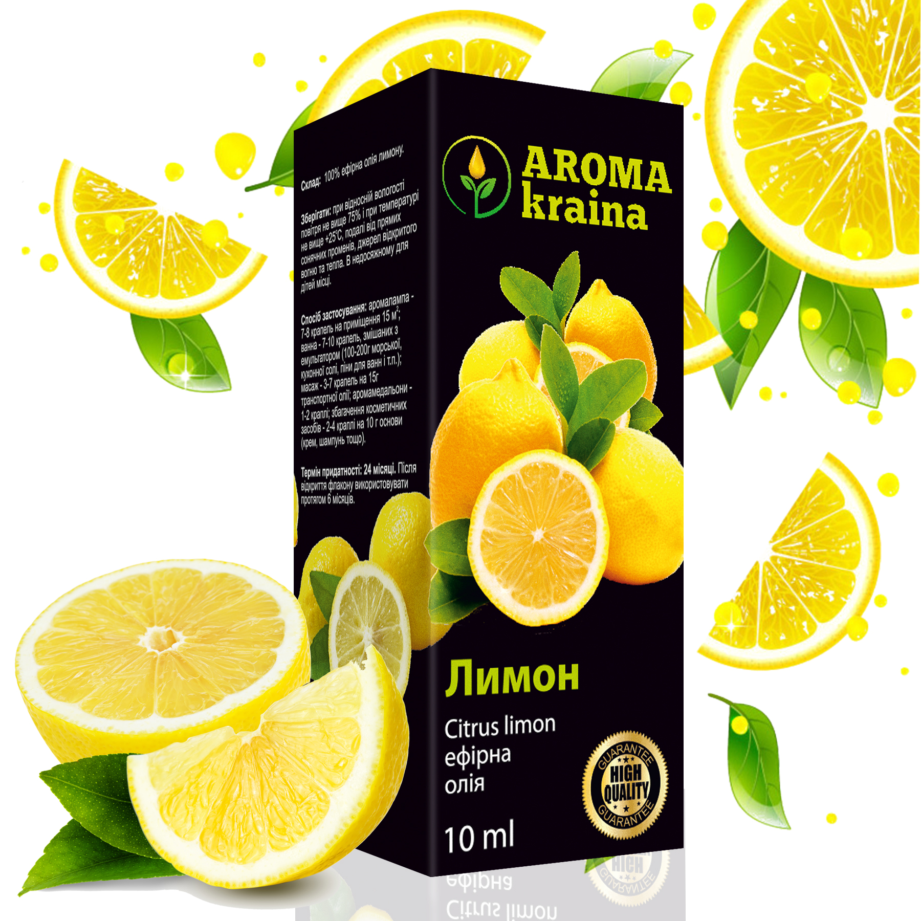 Aroma Kraina natural lemon essential oil has a beneficial effect on a person’s psycho-emotional state: it improves mood, brings cheerfulness and a smile! Regular use of cosmetics with the oil helps eliminate age spots and freckles, evens out skin tone, and makes it brighter and more radiant. It regenerates skin cells, evens the complexion, and smooths fine wrinkles.