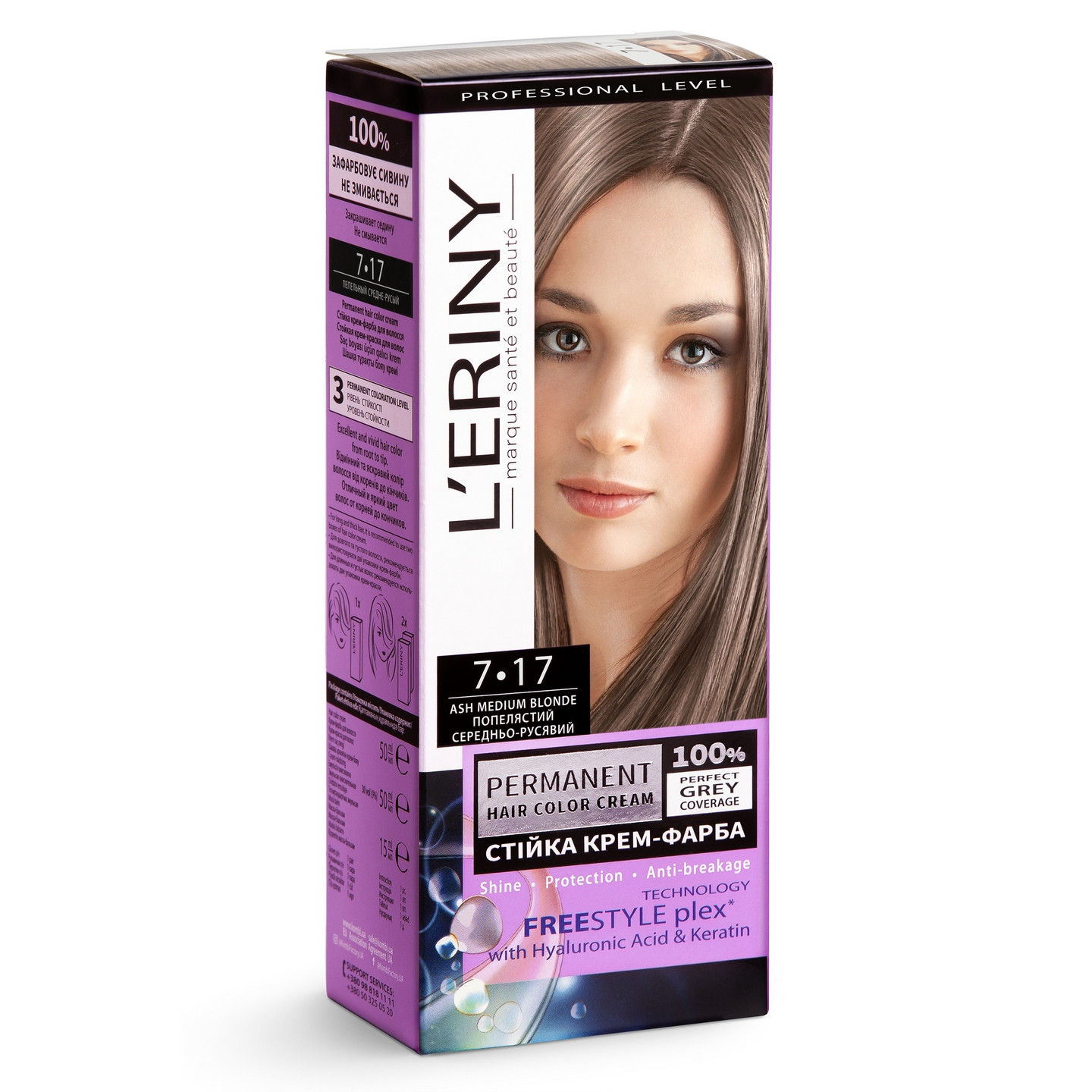 Hiusten väri ”L’ERINY”, 7.17 Tuhka keskikokoinen vaalea.