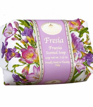 Натуральное мыло, обогащенное эссенцией фрезии, окутает кожу приятным цветочным ароматом с древесными нотками и легким цитрусовым оттенком. Мягкое увлажняющее мыло сделает вашу кожу гладкой и бархатной. Изготовлен из высококачественных ингредиентов, оно прекрасно чувствуется на коже. Мыло украшено фирменным оттиском с изображением флорентийской лилии и завернуто в хорошую бумажную упаковку.