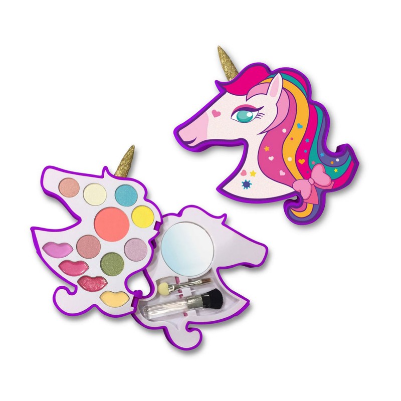 В набор входят: блеск для губ (4 шт), тени для век (7 шт), румяна (1 шт), аппликатор (1 шт), зеркало. Для детей от 3 лет.