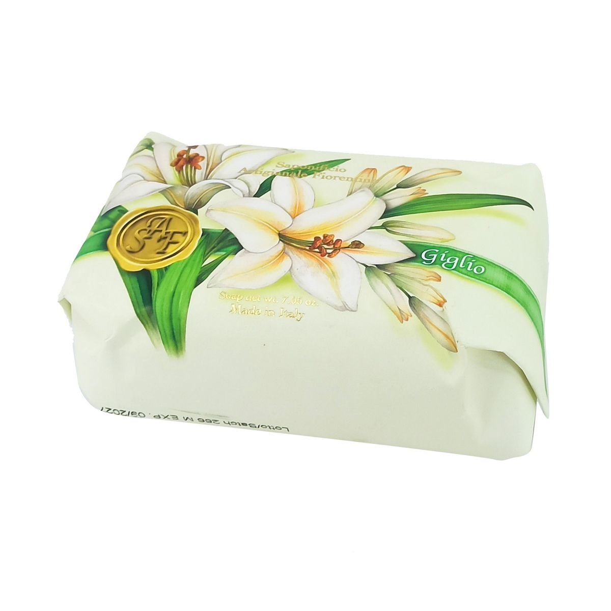 Saponificio Artigianale Fiorentino liilia seep on imekaunis Firenze seep, mis muudab teie igapäevased nahahooldustoimingud tõeliseks ilurituaaliks. Tänu looduslike koostisosade kooslusele hooldab seep õrnalt keha nahka, tagades soovitud puhtuse, pehmuse ja mugavustunde. Valge liilia peen aroom jääb pärast meeldivat vanniskäiku nahale õrna loorina.